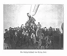 The team of the 1896 Erling Jarl expedition. Arthur S.v.S. is in the front to the right with the white cap and beard.