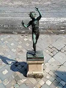 4. 1 2 Zahn, Wilhelm Johann Karl (February 1831). "Ultime scoperte di Pompei ed Ercolano. Lettera del prof. Guglielmo Zahn al prof. Gerhard". Bullettino dell'Instituto di Corrispondenza Archeologica (in Italian). Rome: Instituto di Corrispondenza Archeologica: 19, 25. Retrieved 1 May 2023. Il 26 ottobre si scoprì nell'atrio, e propriamente vicino all'impluvio, una figura di bronzo… ...nel mezzo è l'impluvio con una piccola fontana. Su di uno de' suoi lati si è rinvenuto un simulacro di bronzo.