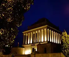The temple was designed by architect John Russell Pope, who modeled it after the tomb of Mausolus at Halicarnassus, one of the Seven Wonders of the Ancient World.[1] The building was dedicated four years later on October 18, 1915.