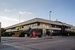 The new building was designed by Fitzroy Robinson & Partners in the Modernist style, built in brown-blue brick from Staffordshire at a cost of £380,000 and was completed in 1972.[4][5][6] The design involved a low-set, "strongly horizontal" structure facing onto Lansdowne Road. At the centre of the main frontage there was a short flight of steps leading up to an opening containing three glass doorways; above the opening was a concrete panel bearing a Royal coat of arms. The ground floor, which was brick-faced, was recessed under concrete panelling, while the first floor, which was fenestrated with a row of casement windows, was recessed under concrete panelling in a similar style. Internally, the building was laid out to accommodate four courtrooms.[7]