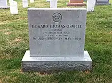 Orville died suddenly on May 24, 1960, and was buried at Arlington National Cemetery. During his career, Orville became notable for being the first person to advocate a national array of radar stations to monitor severe weather patterns.[11] Orville Coast in Antarctica was named after him,[11] as was the Howard T. Orville Scholarship in Meteorology, established in 1964 by the American Meteorological Society.[8]