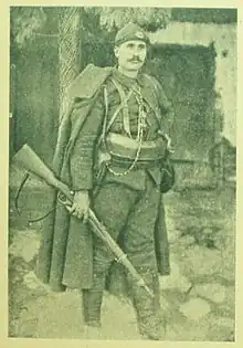 Hristo Andonov was born in the village of Grčište (now in Republic of North Macedonia). He joined the revolutionary organization IMARO, but because he was wanted by the Ottoman authorities, he escaped to Bulgaria. During the Balkan Wars, Andonov was a volunteer in the Macedonian-Adrianopolitan Volunteer Corps in the revolutionary band of Ichko Dimitrov. Later, he was a member of the revolutionary band of Kosta Hristov Popeto and he also served in the 4th company of the 15th Štip Division.[1] At the end of the First World War, he participated in the restoration of the IMRO and joined a revolutionary band that operated in the region of Strumica. 1923 he became a leader in the region of Gevgelija, and in the years that followed, he became a leader of the region of Dojran.[2]