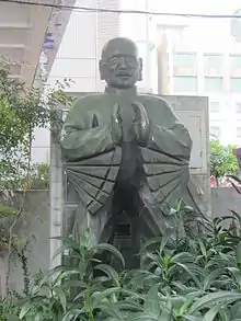 Born on 2 January 1901, Huang learned the art of puppetry from his father and another puppeteer.[1][2] He was also trained in beiguan music.[3] Huang renamed his father's troupe Wuzhouyuan,[1][2] and developed his own stories and characters, most notably Shi Yan-yun.[1][4] At the start of his career, Taiwan was under Japanese rule, and Huang was limited to public performances that used the Japanese language and portrayed Japanese customs. However, Huang's secretly held private shows told traditional and historic Chinese tales, several of which he had read while in training.[1] Over time, Huang became renowned as a national treasure.[5][6] As his many students, including second son Huang Chun-hsiung, formed their own theatre troupes in the 1950s, they ushered in the Golden Ray era, dominated by more elaborate shows in an attempt to compete with modernized entertainment mediums, such as comic strips, music, film, and television.[7][8][9] Huang was awarded a National Cultural Award in 2000,[10] a National Award for Arts in 2002,[11] and presented with a presidential citation for lifetime achievement in 2004.[12] Later that year, Huang's fifth son, Huang Feng-shih was named to the Legislative Yuan.