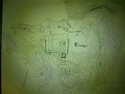 The site was built on the west slope of the "Tecolote" hill; the slope is separated east-west by a ravine that forms two sectors at the foot of the hill and two more on the top, all of which contain archaeological vestiges.[1]