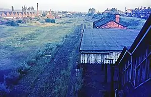 Hucknall Central was of the larger 'town' variety of stations on the Great Central main line, with access to the island platform being via a footbridge from the booking hall which sat on the eastern side of the line. More comprehensive passenger facilities were provided at Hucknall, similar to Loughborough Central and Rugby Central stations, though not quite as lavish as in those cases.[1] The station was constructed circa 1896-1898 by the contractors Logan and Hemmingway.[2][3]