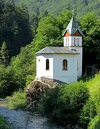 The church in Hudajužna is dedicated to Saint Barbara. It was built in 1905 at the same time the railroad was built. It is a small building with a chancel walled on three sides and a nave through which the bell tower rises. It is roofed with sheet metal.[8]