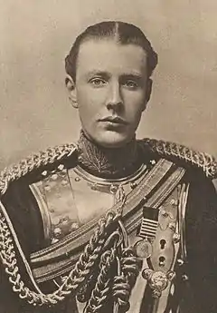 Like many of his social class who were born to lives of privilege, the Duke was often occupied in the pursuit of pleasure. He was described as "a pure Victorian who had eyes for his shotgun, his hunters, his dogs … a man who enjoyed hiding diamonds under the pillow of his mistresses …"[5] He was also prompt to seek military service when war broke out, volunteering to fight as a front-line officer in both the Boer War and the First World War. As a nineteen-year-old, he briefly attended a French boarding school run by the Count de Mauny, who was rumoured to have made sexual advances towards some of its pupils.[6] In later life, the Duke was notable for being virulently opposed to homosexuality.[7]