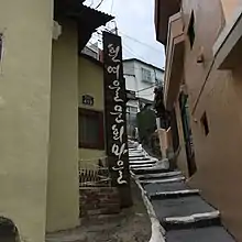 Huinnyeoul Culture Village(흰여울문화마을) is a town of Yeongseon-dong, Yeongdo District, Busan, South Korea. Located on a high cliff, people can see the sea of Busan at a glance. It is called Korea's Santorini. It is also the background of a movie The Attorney.[1]