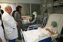 Secretary of State Condoleezza Rice in the Tbilisi Central Hospital, meeting with injured from Gori