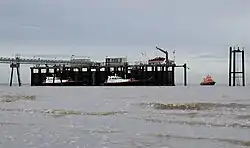 The lifeboat was moored at the end of a pier that sets out into the Humber Estuary (westwards from Spurn Head) rather than a traditional launch down a ramp into the sea (which is on the eastern side of Spurn Head). This location has been described as being in the lee of bad weather, thereby providing a safer place to set off from.[23] The crew have pushbikes to cycle down to the end of the pier and then use a boarding boat to get to the lifeboat.[24] Despite some buildings being erected to launch the lifeboat, even from the early days, it was recognised of the difficulties in launching the boat from land, so it has been traditionally moored away from the coastline.[25] A traditional lifeboat house with slipway was built in 1923 and used up until 1977, but it fell into disuse with bigger ships arriving that were better moored afloat. The slipway and lifeboat house were demolished in 1995.[9]