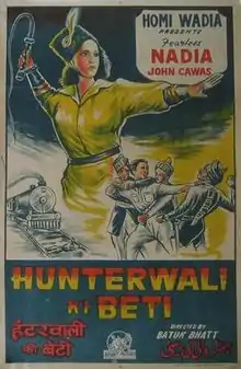 Hunterwali Ki Beti is a Bollywood film. It was released in 1943,[1][2] and is the sequel to the 1935 film Hunterwali.[3] Both films starred Fearless Nadia as the heroine and were produced by the Wadia brothers JBH and Homi (Nadia's husband) of Wadia Movietone.It was the first Indian movie to have sequel.