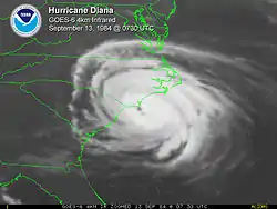 ![]() Diana near peak intensity off the coast of North Carolina on September 11 | |