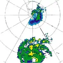 Radar image of Dora passing south of Hawaii.