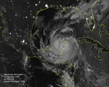 ![]() Roxanne shortly before landfall on the Yucatan Peninsula, at peak intensity, on October 10 | |
