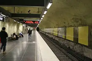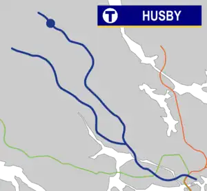 Husby is a station on the blue line of the Stockholm metro, located in the district of Husby, northern Stockholm. The station was inaugurated on 5 June 1977 as part of the extension from Hallonbergen to Akalla.[2] The distance to Kungsträdgården is 15 km (9.3 mi).