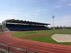 In 2014, the existing floodlights with a light intensity of 400 lux were upgraded to 1000 lux to meet the requirements for showing televised evening matches in the Danish Superliga.[20][9] During three months in the summer of 2016, the running tracks surrounding the exhibition field were expanded and upgraded from the existing six lanes to eight lanes, the existing red colored tracks were renovated and replaced with blue coating, the sewer in front of the grandstand was renovated, a new roof for the clubhouse, while undersoil heating was installed on both the main football pitch and lane 1 inside the stadium.[1][6] Besides a new heating system, new sinks, a new irrigation system and new rolled natural grass turf, the size of the exhibition pitch was upgraded from the existing 102 x 65 meters to 105 x 68 meters to accommodate the Danish FA's requirements for football stadiums in the top three tiers in Denmark, especially tier two.[6] By expanding to eight lanes, the stadium and the local athletics club, Hvidovre AM, could be considered as hosts for larger national and international sports events in the future, such as the Danish Championships.[6] The renovations in 2016 cost the Hvidovre Municipality a total of DKK 15.5 million.[6] Due to the renovations, two of Hvidovre IF competitive matches in the 2016–17 season of the Danish 2nd Divisions were played at Avedøre Stadium.