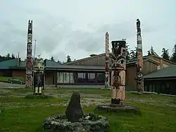 The Hydaburg Totem Park is a city park in the small community of Hydaburg, Alaska, located on the western side of Prince of Wales Island in southeastern Alaska. The park is also part of the many parks inside the Tongass National Forest. The park, created in 1939, contains a collection of preserved and recreated totem poles, based on originals collected from small communities abandoned by the Haida people to form Hydaburg. The old totem poles were brought to the park by crews from the Civilian Conservation Corps, and were recreated and preserved under the guidance of Haida master carvers.[2] The park has been the subject of a major restoration effort in the 2010s. The old totem poles, that were removed from the park, remain in outdoor storage near the old cannery in the downtown area of the village.