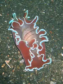 | Live individual of Hydatina physis, head end towards the top of the image | |