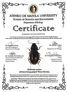 3. Rappler.com (2013-09-07). "New water beetle species found in Ateneo campus". Rappler. Retrieved 2019-04-17.