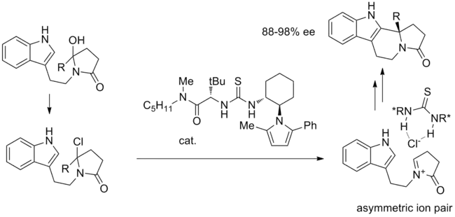 12. Raheem, I. T.; Thiara, P. S.; Peterson, E. A.; Jacobsen, E. N. (August 2007). "Enantioselective Pictet-Spengler-type Cyclizations of Hydroxylactams: H-Bond Donor Catalysis by Anion Binding". J. Am. Chem. Soc. 129 (44): 13404–13405. doi:10.1021/ja076179w. PMID 17941641.