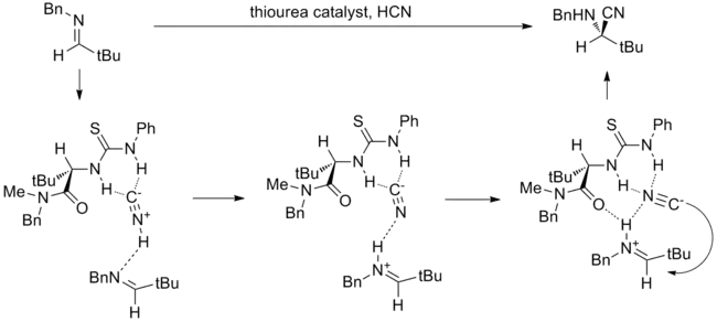 14. Zuend, S. J.; Jacobsen, E. N. (September 2009). "Mechanism of amido-thiourea catalyzed enantioselective imine hydrocyanation: transition state stabilization via multiple non-covalent interactions". J. Am. Chem. Soc. 131 (42): 15358–15374. doi:10.1021/ja9058958. PMC 2783581. PMID 19778044.