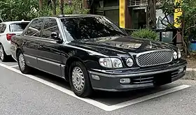 The Hyundai Dynasty is a premium executive sedan that debuted in 1996.[1] Manufactured by Hyundai Motor Company, features of the Dynasty included electronically controlled suspension, dual climate control, and power memory seats (front and rear). To differentiate the Dynasty from its shared platform smaller Grandeur, Hyundai used a different badge (stylized D logo) for Dynasty.
