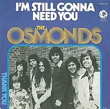 "I'm Still Gonna Need You" is a song performed by The Osmonds in 1975. It is on their 1975 album, The Proud One.[2] Its B-side, "Thank You", is also on the album. It reached No. 38 on the U.S. Adult Contemporary chart and No. 32 in the U.K.[3]