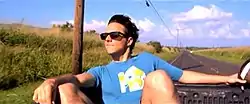 Mraz sits in the backseat of a taxi. The scene was filmed the morning after completion of Oahu shooting. Doane hunkered down next to the big city of couple of guys in a pick-up truck who take him to the little-known skateboard park on Oahu's North Shore.[20]