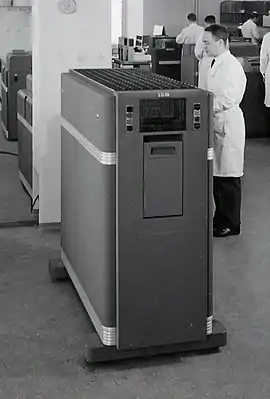 The IBM 604 Electronic Calculating Punch was the world's first mass-produced electronic calculator along with its predecessor the IBM 603.[1] It was an electronic unit record machine that could perform multiple calculations, including division. It was invented and developed by Ralph Palmer, Jerrier Haddad and Byron Phelps.[2][3] It was introduced by IBM in 1948.[4][5]