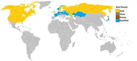 2017  United States (4)  Canada (9)  Russia (8)  Sweden (8) Montreal and Toronto[13]  Canada