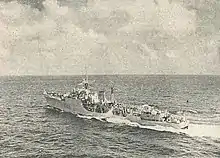 INS Khukri was a Type 14 (Blackwood-class) frigate of the Indian Navy. She was sunk off the coast of Diu, Gujarat, India by the Pakistan Navy Daphné-class submarine Hangor on 9 December 1971 during the Indo-Pakistani War of 1971. This was the first warship sunk in action by a submarine since World War II. It remains the post-independence Indian navy's only warship to be lost in war.[2][3]