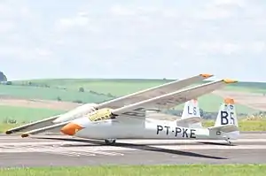 The KW-1b Quero Quero (Brazilian name for the southern lapwing bird) is a sailplane that was produced in Brazil in the 1970s and 1980s. It is a conventional, single seat design of wooden construction. The undercarriage is a fixed monowheel, and construction is of wood (freijó and plywood) throughout.