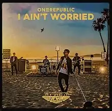 "I Ain't Worried" is a song by American pop rock band OneRepublic, released on May 13, 2022, through Mosley Music Group and Interscope Records. It is the second and final single to the soundtrack for the film Top Gun: Maverick (2022). The song was written and produced by Ryan Tedder, Brent Kutzle, and Tyler Spry, with production from Simon Oscroft and John Nathaniel. The song also contains elements of Peter Bjorn and John's 2006 hit single "Young Folks" and features background vocals from Tedder's son; Copeland Tedder. Copeland Tedder is the only other background voice apart from his dad, Ryan Tedder. OneRepublic was the only band to present an original song for the film.
