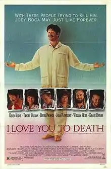 I Love You to Death is a 1990 American black comedy film directed by Lawrence Kasdan and starring an ensemble cast featuring Kevin Kline, Tracey Ullman, Joan Plowright, River Phoenix, William Hurt, and Keanu Reeves.