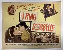 I Ring Doorbells is a 1946 American comedy-drama film directed by Frank Strayer, which stars Anne Gwynne, Robert Shayne, and Roscoe Karns. The story was adapted by Dick Irving Hyland and Raymond L. Schrock from the book of the same name by Russell Birdwell, and Hyland wrote the screenplay. The picture was produced and distributed by Producers Releasing Corporation, which released it on February 25, 1946.