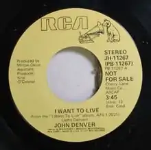 "I Want to Live" is a 1978 charting single by John Denver from the album of the same name. Denver wrote the song "I Want to Live" after with folk singer Harry Chapin promoting the idea to President Jimmy Carter for a President's Commission on World Hunger. Denver conceived that the song should be used as the commission's theme song, though the commission produced little more than a report.[1] Denver's interest was spurred by seeing a documentary film by Keith Bloom called The Hungry Planet.[2]