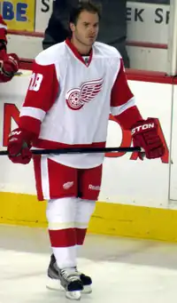 The following summer, White signed a two-year, $5.75 million contract with the Detroit Red Wings.[6] He scored his first goal with Detroit on October 7 during a 5–3 victory over the Ottawa Senators, and finished with 32 points during the 2011–12 season. The following season, shortened because due to the 2012–13 NHL lockout, saw White's role with the Red Wings dramatically reduced; he appeared in only 25 of the team's 48 games and scored only four points. During 2012–13 lockout, White made controversial public comments about NHL Commissioner Gary Bettman, referring to him as "an idiot...[who has] done nothing but damage the game." White later expressed regret for making the remarks.[7][8]