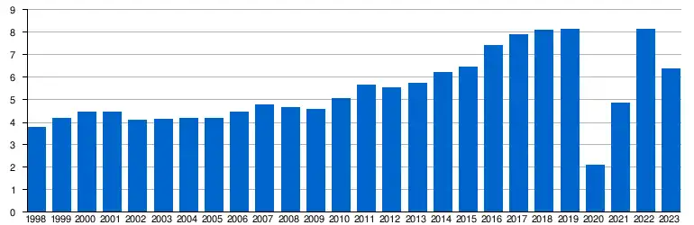 | 2011 | 5,643,180 | 61,768 | 2,755 |