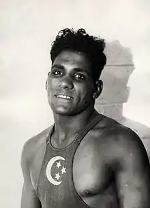 Ibrahim Moustafa (Arabic: ابراهيم مصطفى, 23 September 1904 – 9 October 1968)[1] was a Greco-Roman wrestler from Egypt.[2] At his first international tournament, the 1924 Olympics, he finished fourth in the light-heavyweight category. Four years later he won the gold medal in this event, becoming the second Egyptian Olympic champion after Sayed Nosseir. At the 1928 Summer Olympics he was the flag bearer for Egypt in the opening ceremony.[3] Next year, upon invitation from the Swedish Wrestling Federation, Moustafa toured Europe and competed in several international tournaments. A carpenter by profession, upon returning home he became a wrestling coach, and prepared one of his three sons, Adel Ibrahim Moustafa, for the 1948 and 1952 Olympics. After his death, the annual Ibrahim Moustafa International Tournament was carried out in his honor.[4]