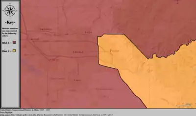 - 1 2 "Adopted redistricting plans: Congressional plan". Idaho State Legislature. Redistricting Commission. October 17, 2011. Archived from the original on December 8, 2011. Retrieved March 12, 2013.