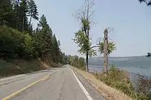 SH-5 begins at an intersection with US 95 in Plummer and heads east through Heyburn State Park, running along the south shore of Chatcolet Lake and Benewah Lake to Parkline. It then continues east past a historical marker for John Mullan into Saint Maries and onto the Coeur d'Alene Indian Reservation within the city, where it ends at an intersection with SH-3.[1][2]