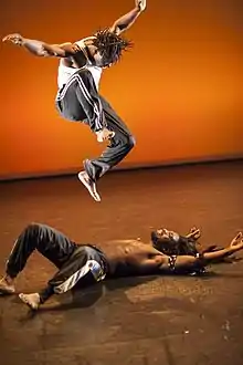Ballet Nimba are self-styled ambassadors for West African Art and culture in the UK. The artists are from several West African nations and they have performed all over the UK at festivals, art centres and rural touring venues, most significantly at London's Southbank Centre[6] and WOMAD's UK festivals.[7] Their performances incorporate acrobatic dancing, traditional musicians and drama. Productions are based on traditional mythology but performed by young contemporary artists with an original sound track.[8]