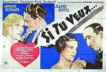 If You Wish It (French: Si tu veux) is a 1932 French comedy film directed by André Hugon and starring Jeanne Boitel, Armand Bernard and Janine Merrey.[1] The film's sets were designed by the art director Robert-Jules Garnier.