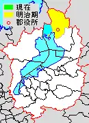Map of Ika District with Meiji period (1890) area in yellow.
