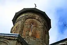 The Ikvi church of Saint George (Georgian: იკვის წმინდა გიორგის ეკლესია, romanized: ik'vis ts'minda giorgis ek'lesia) is a Georgian Orthodox church in the Kaspi Municipality in Georgia's east-central region of Shida Kartli. It is a cross-in-square church dated to the 11th century. The church is known for its elaborate decorative external stone carvings and the 12th–13th-century frescoes, being restored after rainfall damage in 2011. The church is inscribed on the list of Georgia's Immovable Cultural Monuments of National Significance.[1]