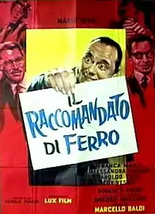 Il raccomandato di ferro is a 1959 Italian comedy film directed by Marcello Baldi and starring Mario Riva.[1] It grossed 89,3 million lire at the Italian box office.[2]