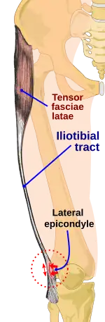 - ↑ Everhart, Joshua S.; Kirven, James C.; Higgins, John; Hair, Andrew; Chaudhari, Ajit A.M.W.; Flanigan, David C. (August 2019). "The relationship between lateral epicondyle morphology and iliotibial band friction syndrome: A matched case–control study". The Knee. 26 (6): 1198–1203. doi:10.1016/j.knee.2019.07.015. PMID 31439366. S2CID 201616794.