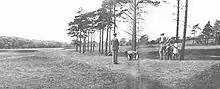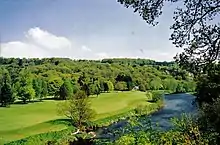 In October 1897 the committee negotiated with Myddleton Estate to rent 70 acres of pasture running along the north side of the River Wharfe. Work began on the new course in February 1898 and was completed by July of that year. The course was designed by Alister MacKenzie and Harry Colt and measures 6,262 yards.[3] The old links course on the moor was leased to an Ilkley Tradesmen's group and golf continued to be played there until the Moor Club was wound up in 1947. On 13 April 1907, Harry Vardon and noted golf architect James Braid played an exhibition match to mark the opening of the new clubhouse.[4] In 1921 the course was described as an "excellent links" course.[5] In 1970 many trees were planted around the course, changing its appearance.[4] The club has hosted the competition for the OCCA and West Riding Golf Trophies, the Yorkshire Ladies' Challenge Bowl in 1955 and the British Girls' Open Championship in 1969.[6][7][8][9]
