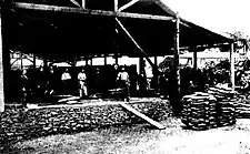 By May 1915, the price of copper had risen, probably due to wartime demand, and there was the prospect of the mine reopening.[41] In 1916, the old Queen Bee Copper Mine was reborn as the Mount Illewong Mine. The mine was dewatered, after around four years of inactivity. A new concentrator plant replaced the on-site smelting of the previous operations; the copper concentrate was shipped to a copper smelter and refinery at Port Kembla.[42][43][44] This revival of the mine—it employed only around twenty men in February 1917[45]—failed to last. Operations were "temporarily curtailed", in October 1917, with the reason being that Port Kembla already had too much ore.[46] Six men later worked the mine as tributers—supplying the C.S.A. mine's smelter at Elouera, north of Cobar township—but large scale mining there was over. Around March 1919, the equipment was stripped from the old Queen Bee Mine.[47]