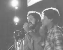 Main speaker at the Zócalo (main square in Mexico City) at a student demonstration and rally with more than 200 thousand participants on January 9, 1987